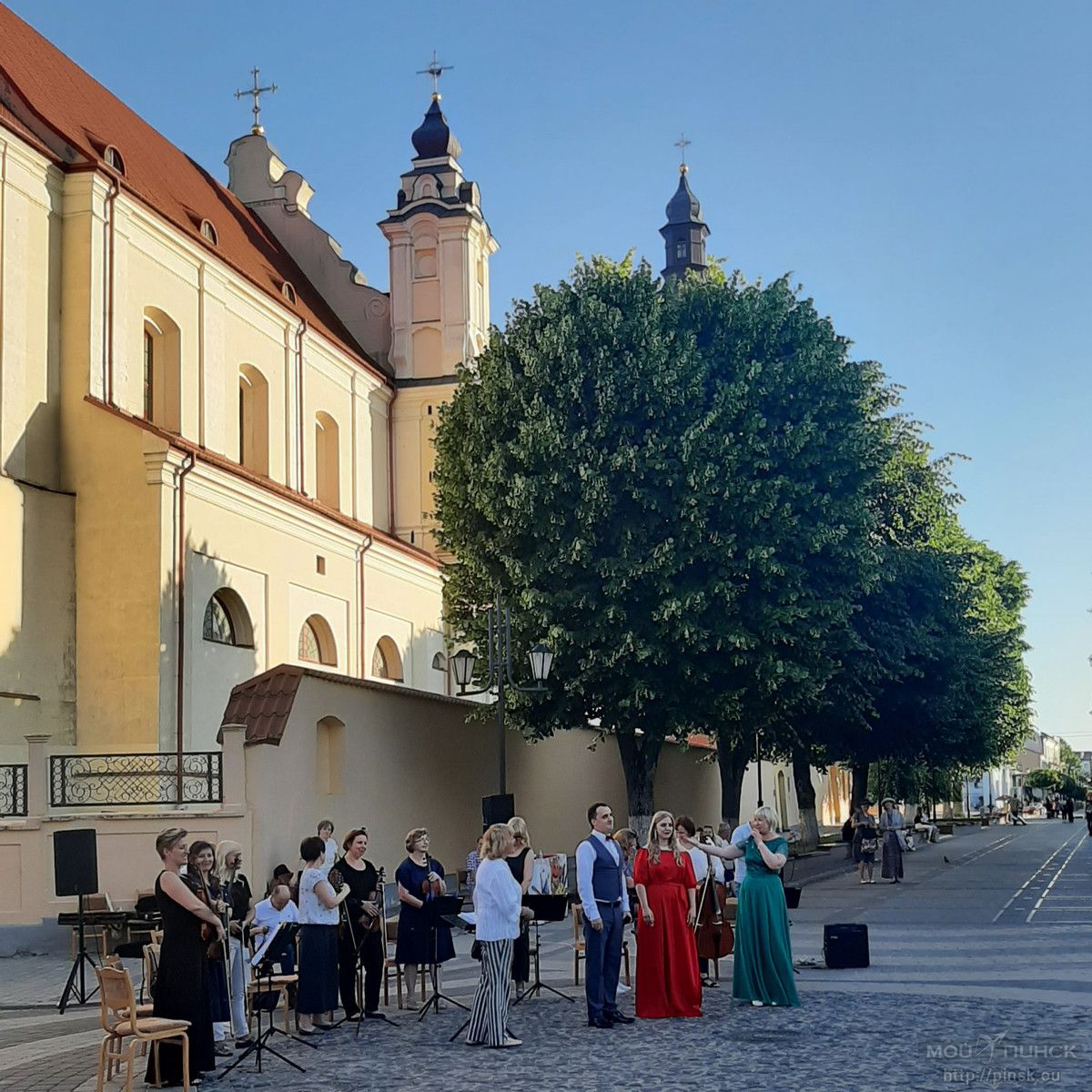 Первый концерт состоялся в пятницу, 18 июня. Свой репертуар представили солисты Пинского городского камерного оркестра, на перекрестке улиц Ленина и Веры Хоружей, рядом с кафедральным костёлом Успения Пресвятой Девы Марии. Собравшиеся зрители отметили тёплую и особенную атмосферу, которая царила на импровизированной сцене.