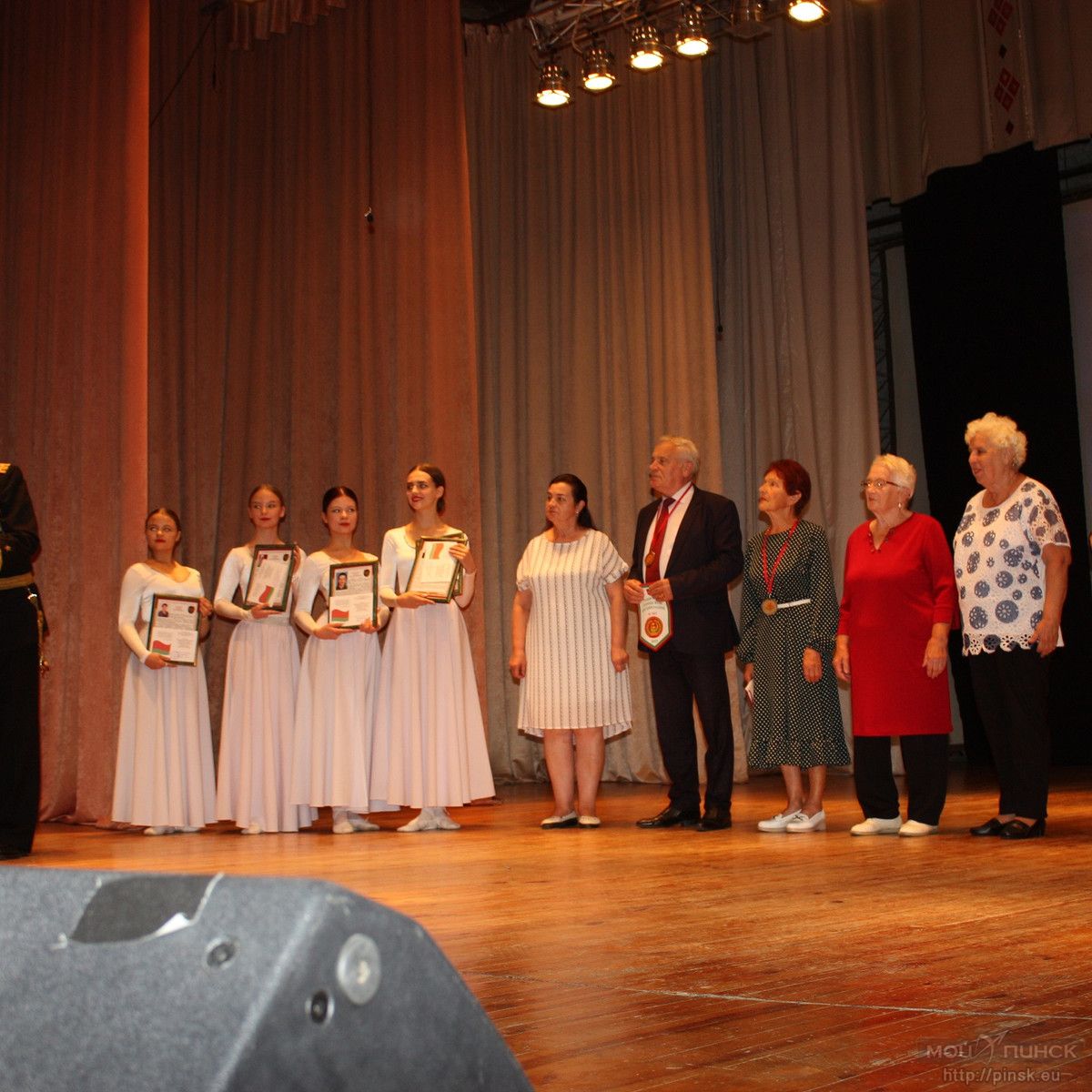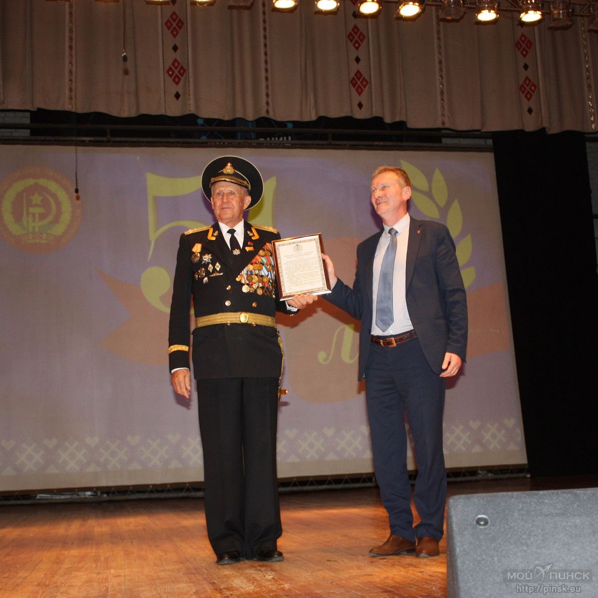 Председатель городского Совета депутатов Лемешевский Леонтий Антонович вручает Почетную грамоту Пинского горисполкома Качановскому Григорию Николаевичу, заместителю председателя Пинской городской организации ветеранов.