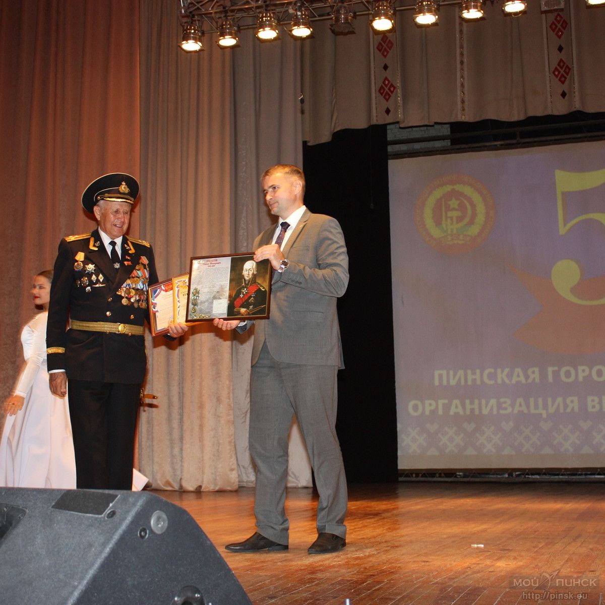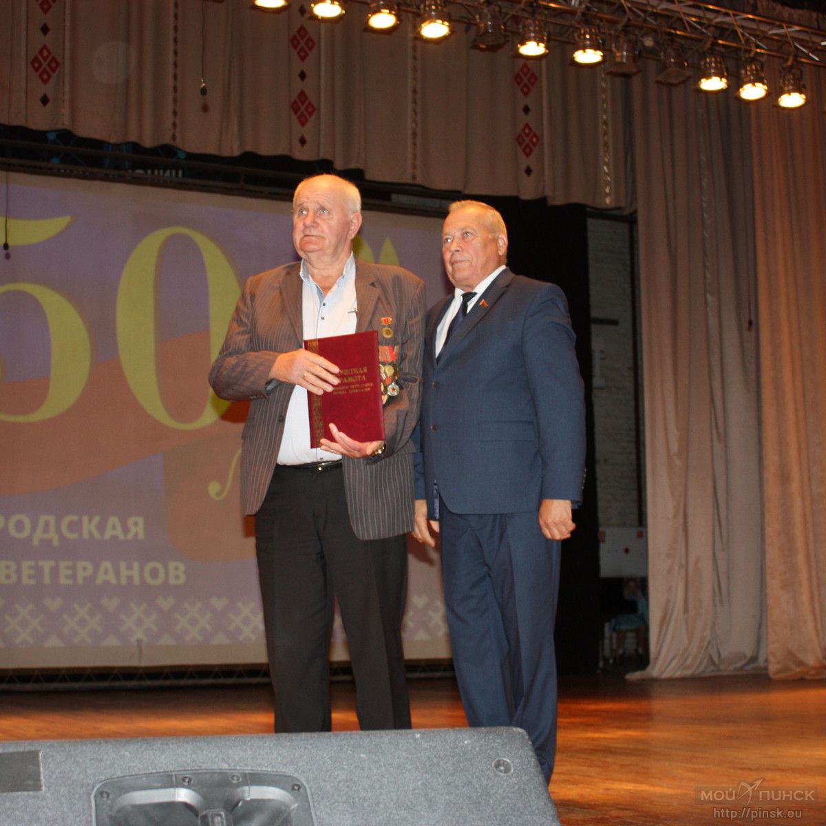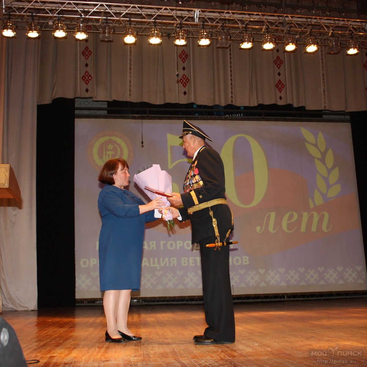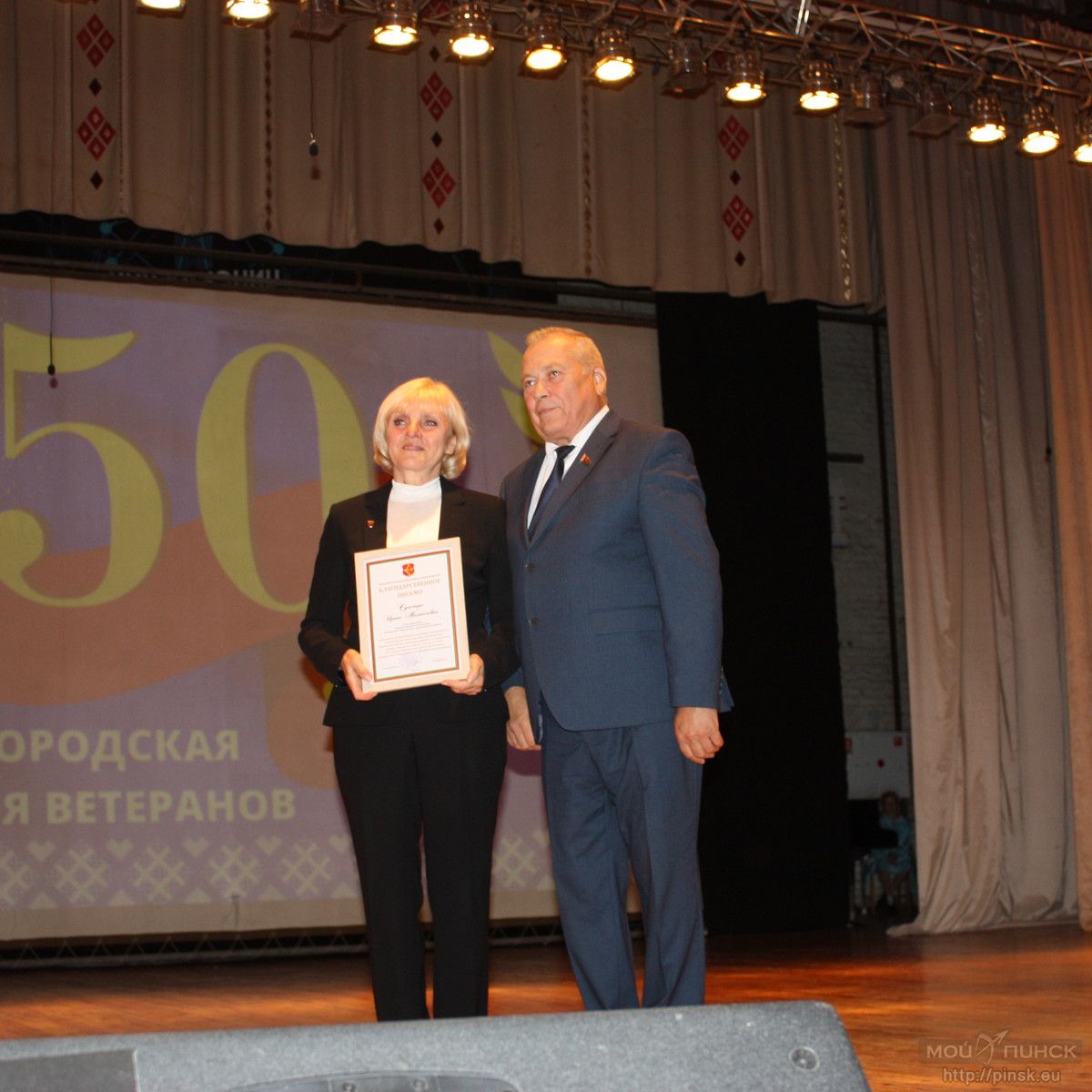 Вручение Председателю Пинской городской ветеранской организации Егорову Н. И. приветственного адреса от Министра труда и социальной защиты Костевич Ирины Анатольевны.