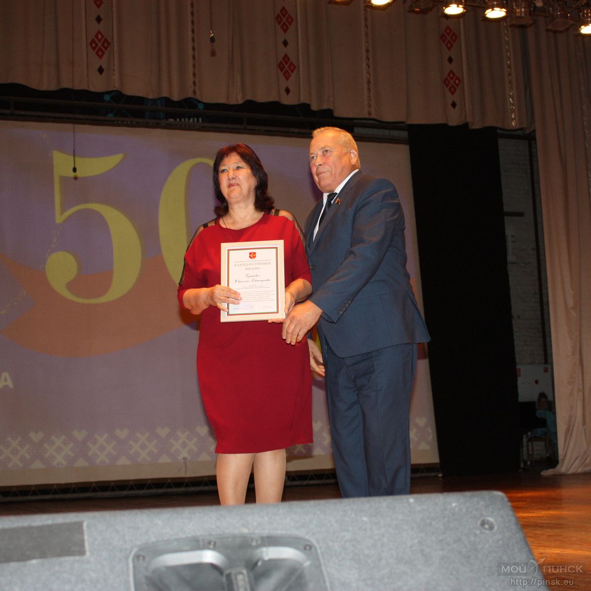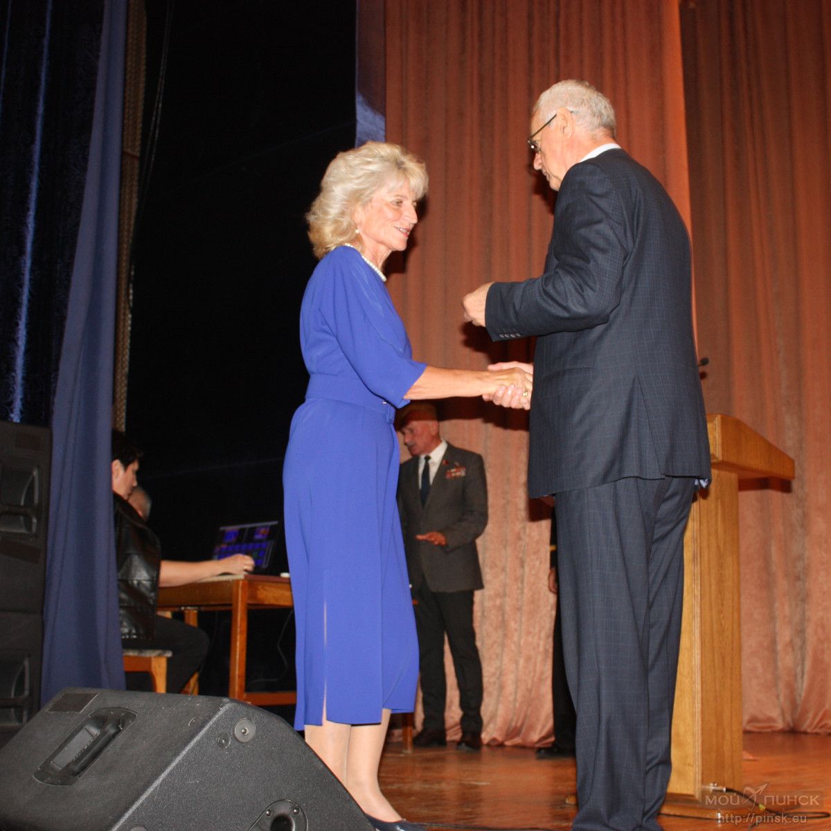 Председатель городского Совета депутатов Лемешевский Леонтий Антонович вручает Благодарственное письмо Пинского горисполкома главному бухгалтеру Пинской городской ветеранской организации Бушкевич Светлане Евстафьевне.